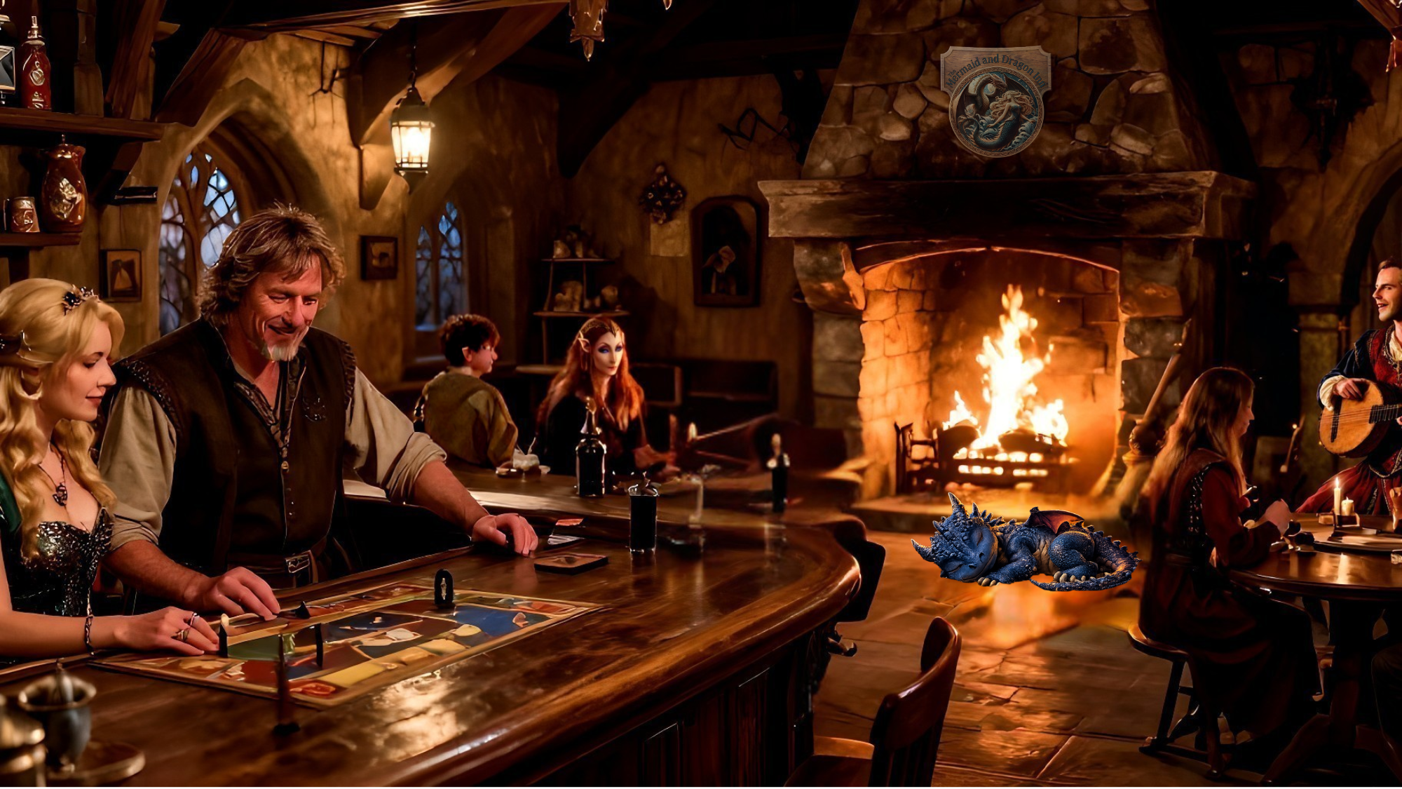 The Mermaid and Dragon Inn invites you to join the adventure. Tip the Bard and he'll write you a song and tell a story that makes your heart strong. In the shop you'll find something new, drop a few gold and spoil your crew.
